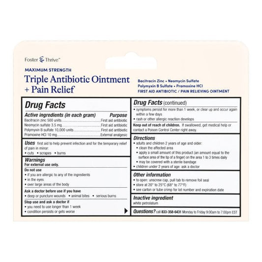 Foster & Thrive Maximum Strength Triple Antibiotic + Pain Relief, 1 oz.