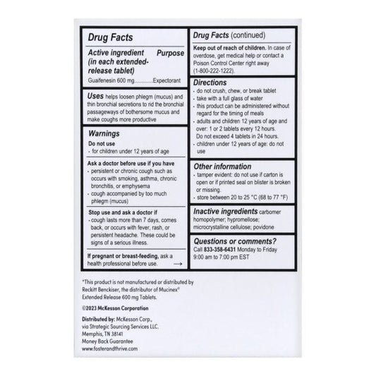 Foster & Thrive 12 Hour Mucus Relief, 600 mg XR Tablets