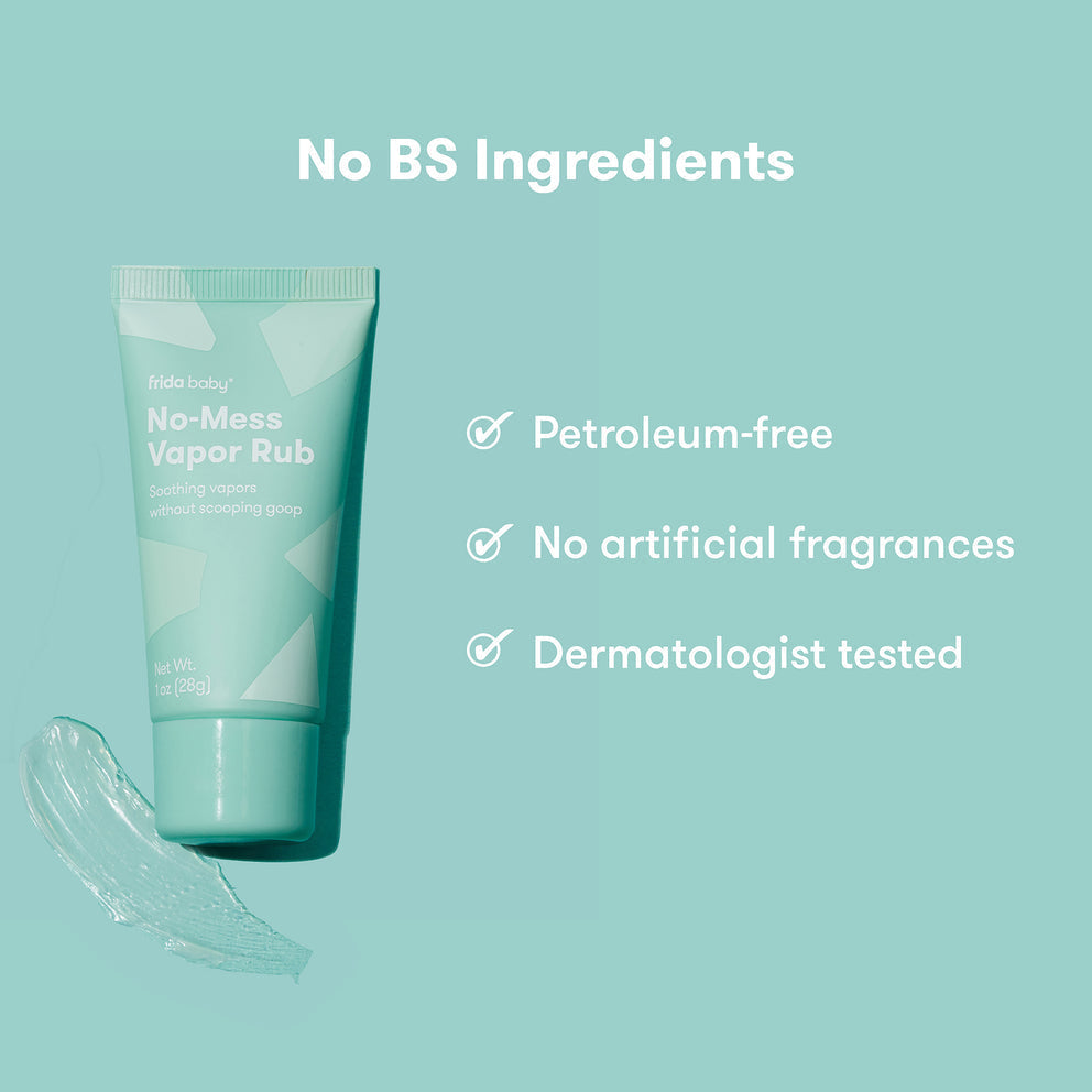 When your baby's nose is stuffed AF, No-Mess Vapor Rub delivers comfort without the cleanup job. Apply the lightweight formula hands-free with a built-in applicator, and let baby rest easy with a soothing scent that lasts.